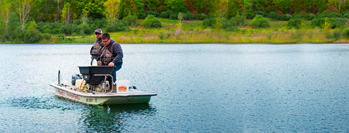 Muck is the dead organic debris accumulating on your pond’s bottom that you often feel between your toes when you step in. If left untreated, a typical pond or lake will receive approximately 1/2″ of muck buildup every year. Muck is not just a problem for your toes; muck is a fertilizer for aquatic weeds and algae. Over time, ponds band lakes with heavy muck will require more frequent treatments to keep aquatic vegetation under control. While we do not dredge ponds or lakes, we offer specialized natural bacteria treatments at a fraction of the cost of dredging and are much less invasive to the surrounding lawn and landscape. This treatment also eliminates the need for off-site removal.